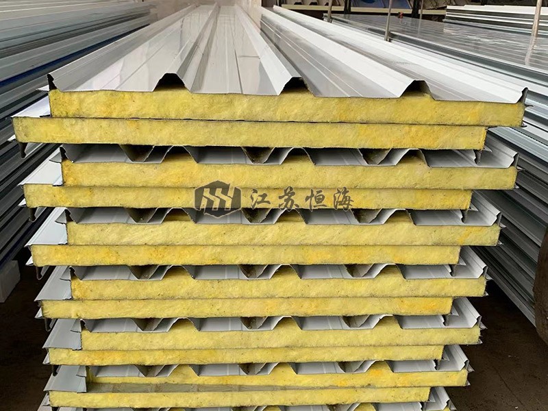 瓦楞玻璃絲綿夾芯板類似于瓦楞巖棉夾芯板,只不過填充的芯材由巖棉換成了玻璃絲綿。