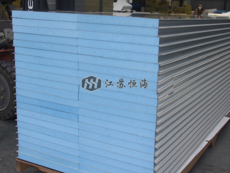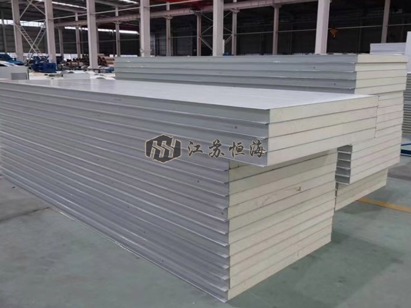 該板由高品質(zhì)彩涂鋼材連續(xù)冷彎成型,中間注入保溫阻燃型聚氨酯液體,經(jīng)高壓混合、發(fā)泡、固化等工藝加工后,芯材與面材強(qiáng)力復(fù)合而成。整套生產(chǎn)流程由聚氨酯連續(xù)自動(dòng)生產(chǎn)線在線完成。