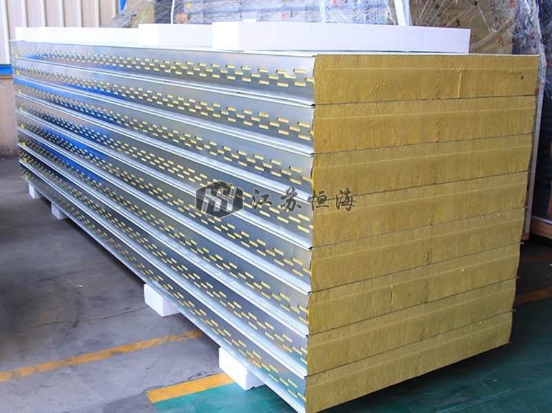 針對表面處理行業(yè)烘干室?guī)r棉夾芯板插口易導熱的特征,在保持巖棉夾芯板原有性能基礎上,自行設計、生產(chǎn)了封邊鋼帶沖孔斷橋的巖棉夾芯板。
