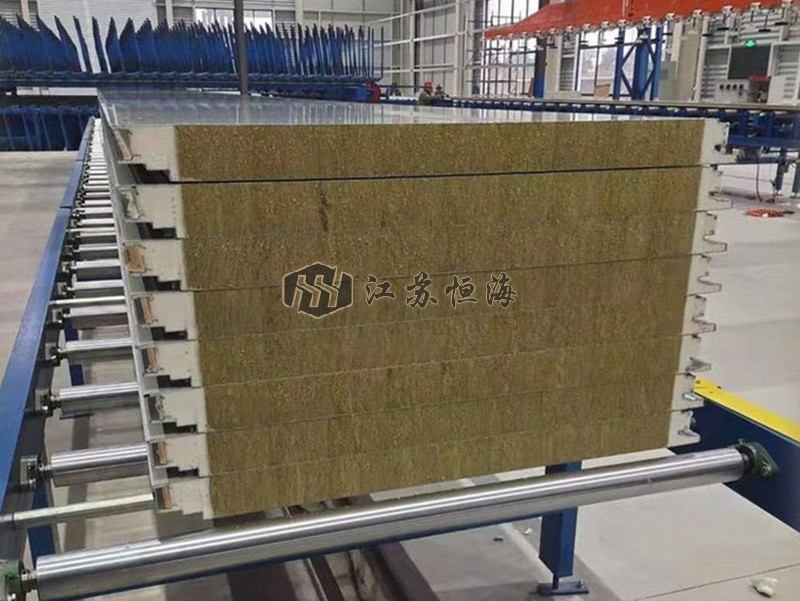 該板由高品質(zhì)彩涂鋼材連續(xù)冷彎成型,中間注入保溫阻燃型聚氨酯液體,經(jīng)高壓混合、發(fā)泡、固化等工藝加工后,芯材與面材強(qiáng)力復(fù)合而成。整套生產(chǎn)流程由聚氨酯連續(xù)自動生產(chǎn)線在線完成。